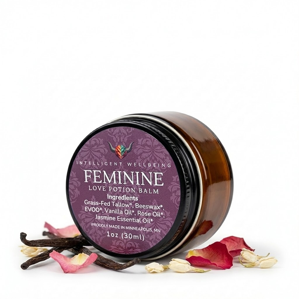 The Feminine Love Potion Balm blends rose, jasmine, and vanilla essential oils with a nourishing tallow base to create a product that’s both skincare and sensual ritual. It hydrates deeply while providing a natural, romantic aroma that soothes the mind and body.